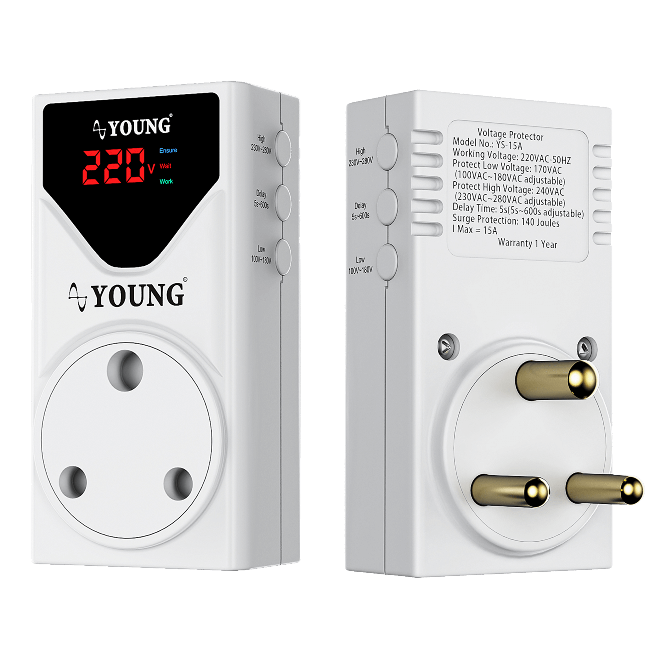 • Adjustable Range: Voltage အနိမ့် (100V-180V)၊ Voltage  (230V-280V) နှင့် Delay Time (5s-600s)